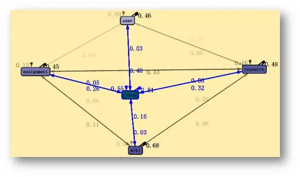 还可以根据路径转换图帮助我们发现学生在网络平台中用什么方式学习。