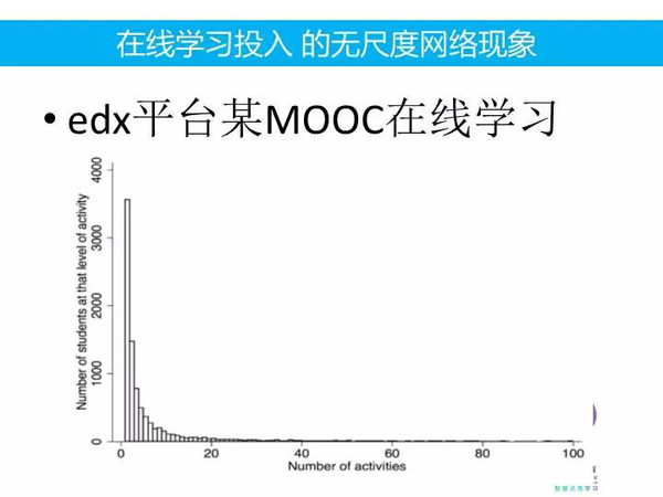 社区教育也是这样。但是我们看到了不一样的东西,在国开开一个在线课程里面强调互动,他会吸引学生来这个平台上,他有粘性,稍微有一点正态分布曲线的样子。